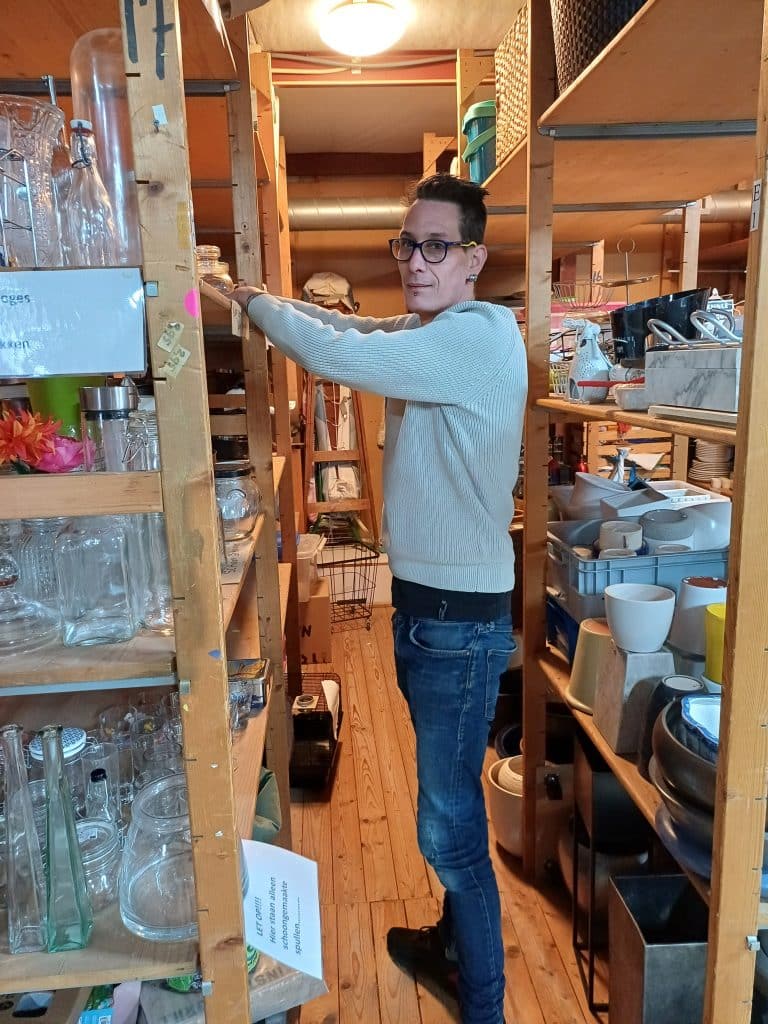 Michel Franken (39) is een zeer actieve man die sinds maart aan het werk is bij KringloopWarenhuis PortAgora aan de Westermarkt. Bij PortAgora zijn ongeveer 50 vrijwilligers actief, een deel van hen heeft een afstand tot de arbeidsmarkt.